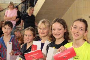 Raffael wurde 5. über 100m Lagen des Jg. 2015 männlich. Leni wurde 3. über 100m Lagen des Jg. 2014 weiblich. Im Finale der Jahrgänge 2009 u.ä. weiblich konnten sich Finja und Elisa über 200m Lagen gegen die Konkurrenz durchsetzen und wurden Erste und Zweite.